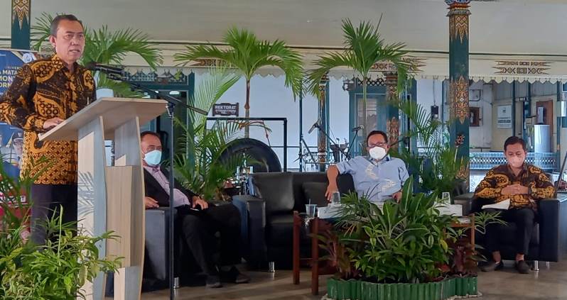 Rektor Universitas Widya Mataram (UWM) Yogyakarta Prof. Dr. Edy Suandi Hamid, M.Ec membuka forum seminar di Pendopo Agung nDalam Mengkubumen, Yogyakarta.