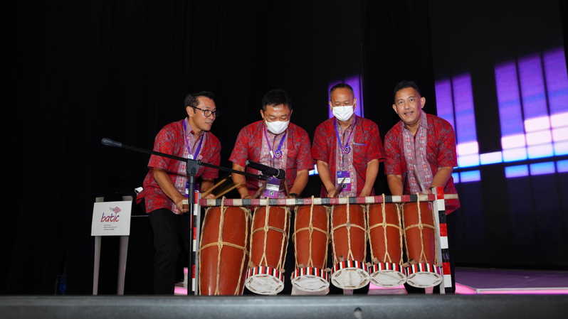 Prosesi Pembukaan Acara BATIC 2022 dengan Memukul Gondang di Hotel Hilton, Nusa Dua Bali.