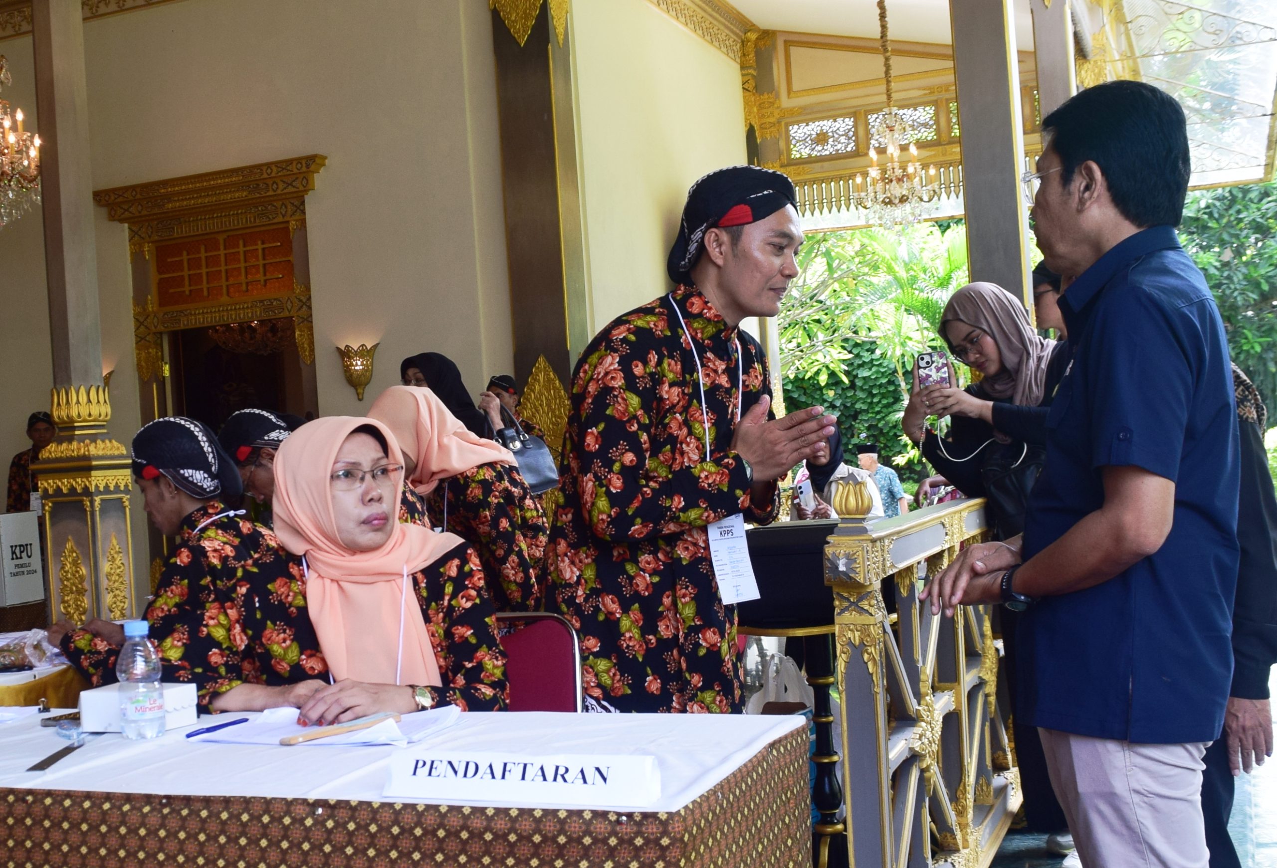 YOGYAKARTA – Apresiasi untuk semua KPPS (Kelompok Penyelenggara Pemungutan Suara) di kota Yogyakarta, yang berusaha menarik minat warga masyarakat untuk mendatangi TPS (Tempat Pemungutan Suara). Seperti TPS 12 Kelurahan Panembahan, Kemantren (kecamatan) Kraton, Yogyakarta, yang menggunakan bangunan heritage dan petugasnya mengenakan busana jawa Gagrak Ngayogyakarta. Demikian disampaikan Walikota Yogyakarta, Singgih Raharjo , ketika meninjau pelaksanaan pemungutan suara di TPS 12, ndalem Tjokronegaran, Kelurahan. Panembahan, Kemantren Kraton, Yogyakarta, Rabu (14/2/2024).